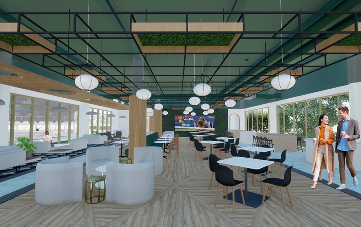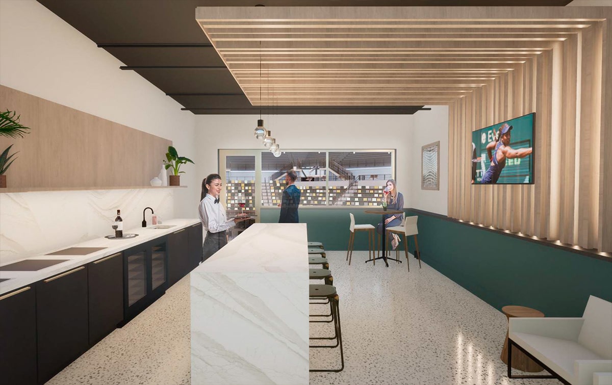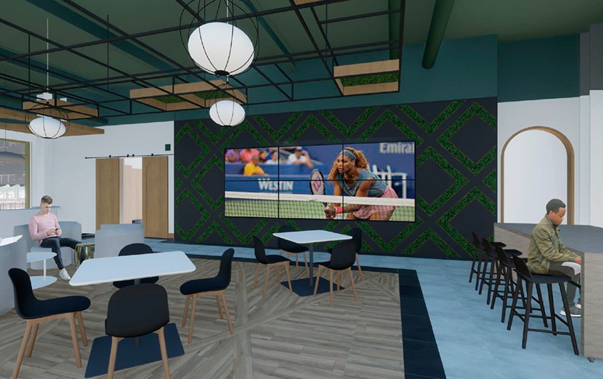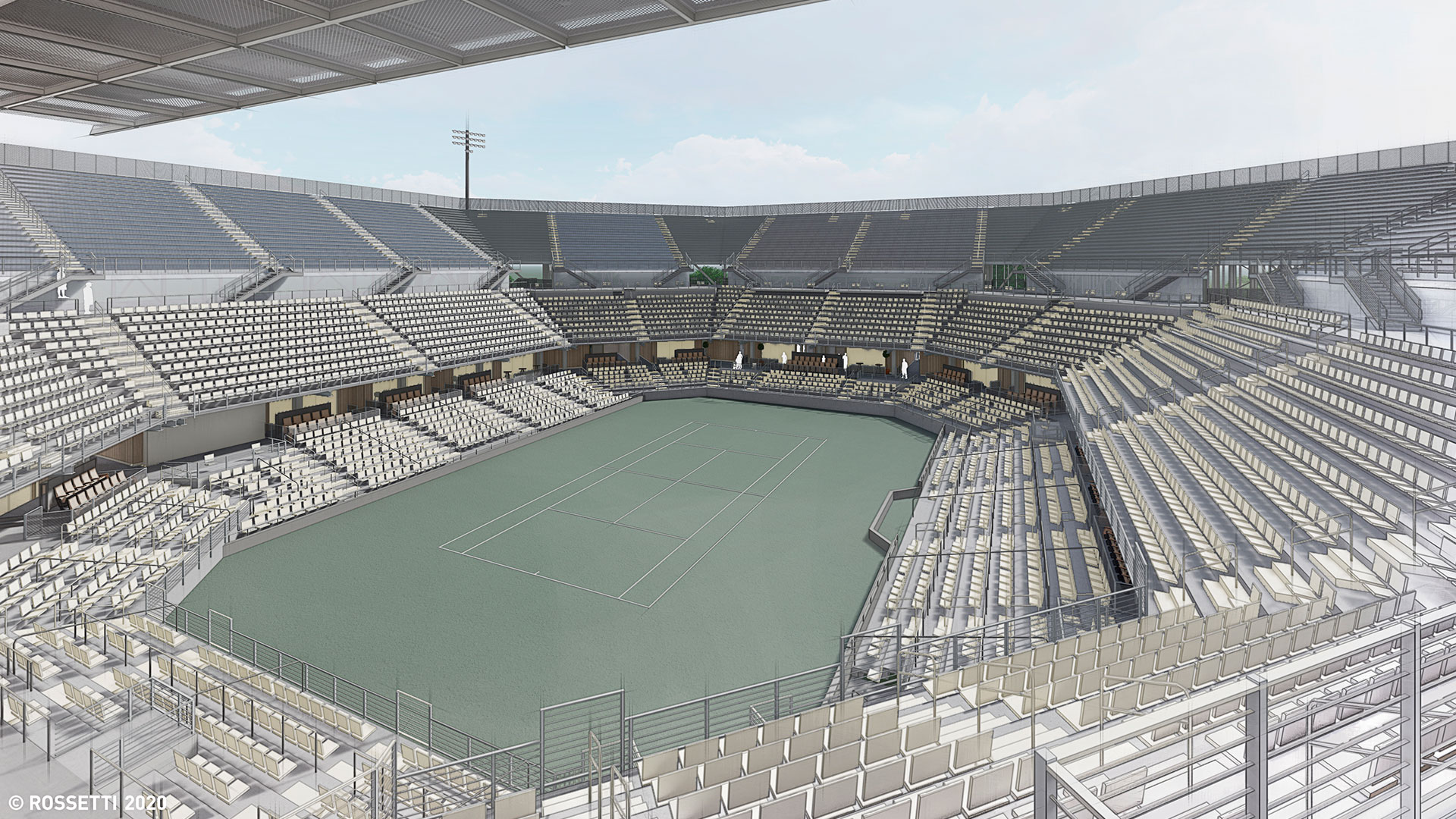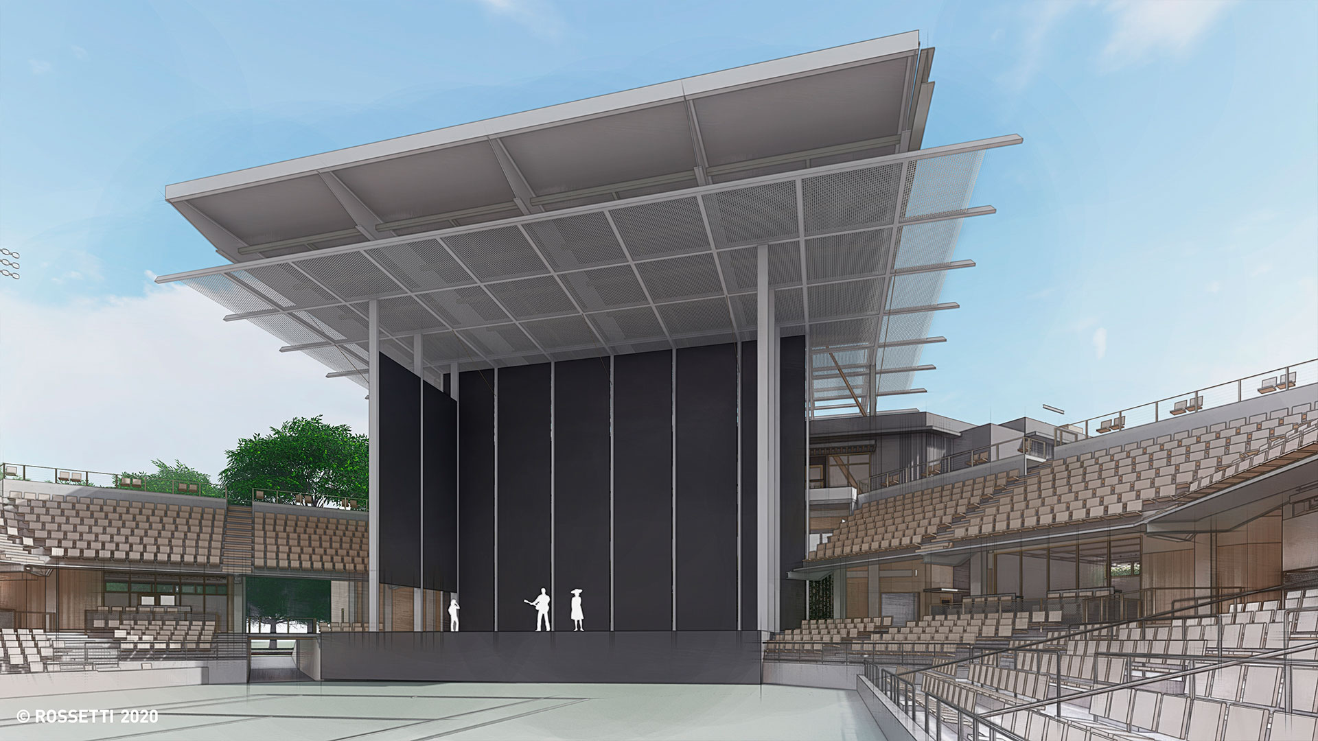 The new plan features a four-story “Stage House” that will house player wellness facilities including premium locker rooms, physical therapy and exercise space as well as back of house media and production and food preparation areas, plus a VIP Club level overlooking Center Court.