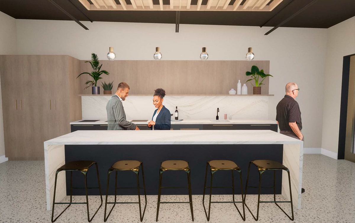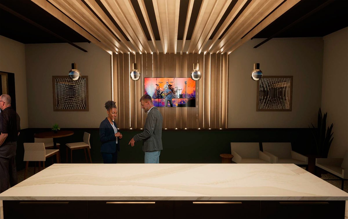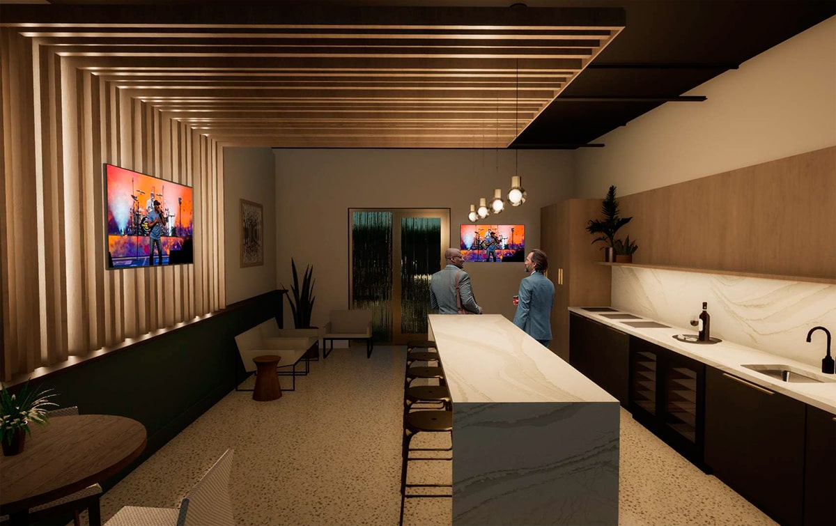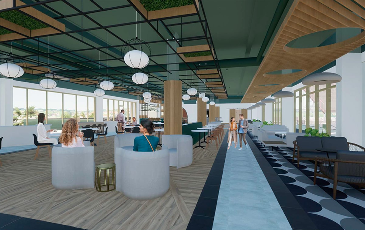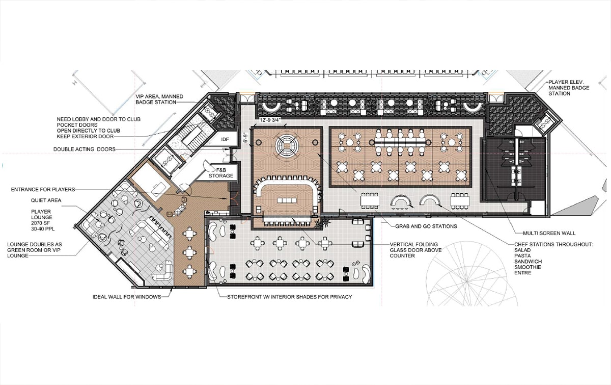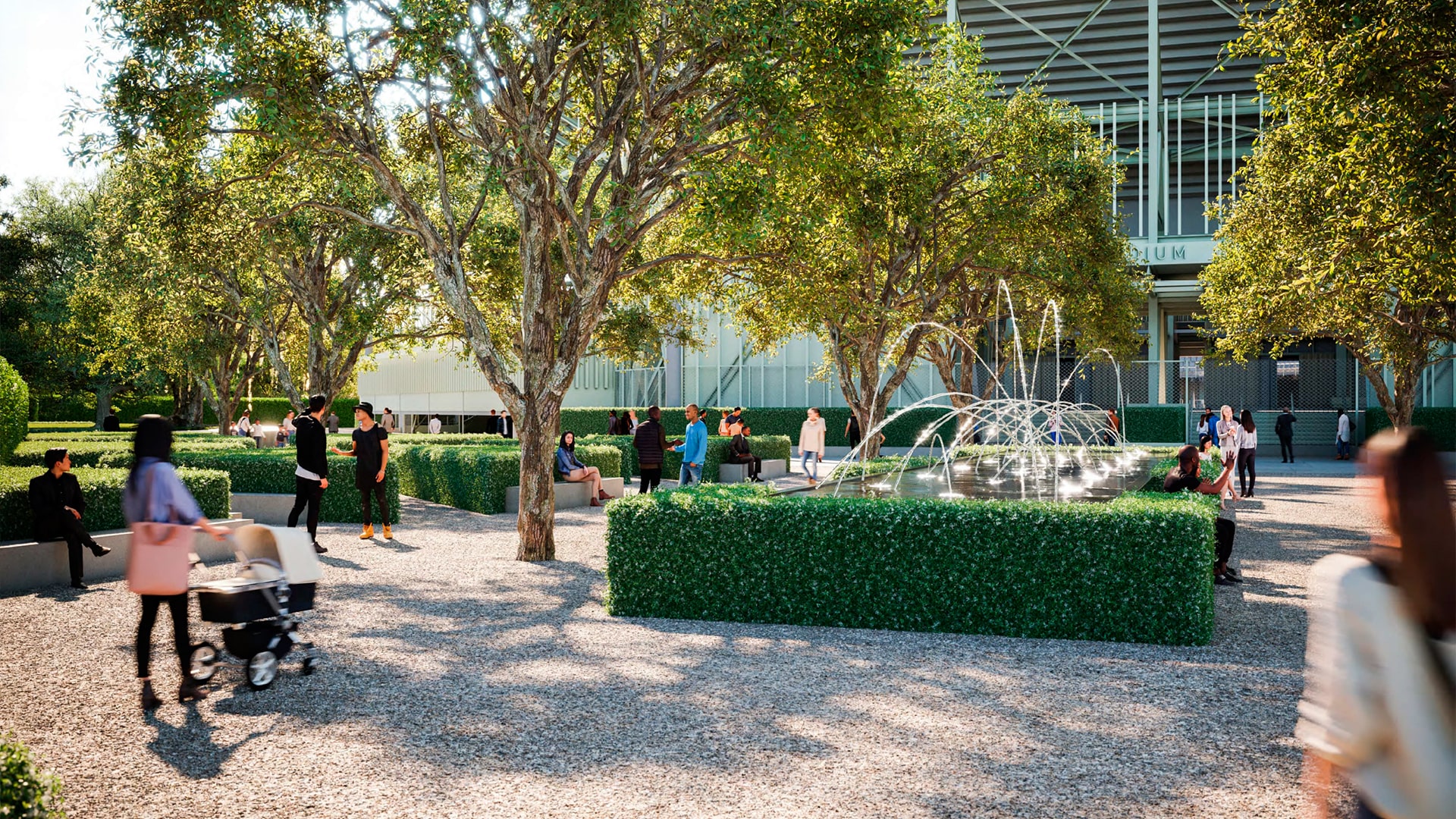 The new plan features a four-story “Stage House” that will house player wellness facilities including premium locker rooms, physical therapy and exercise space as well as back of house media and production and food preparation areas, plus a VIP Club level overlooking Center Court.